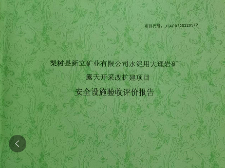 JTAP0220220572-梨樹縣新立礦業(yè)有限公司水泥用大理巖礦安全設施驗收評...
