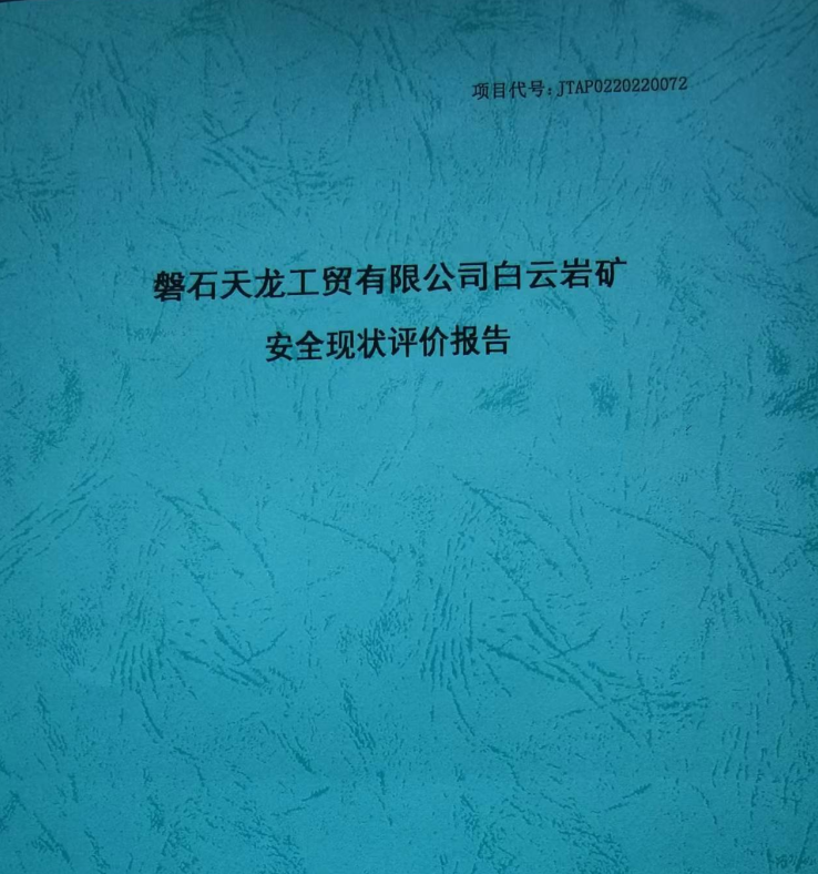 JTAP0220220072-磐石天龍工貿(mào)有限公司白云巖礦安全現(xiàn)狀評(píng)價(jià)項(xiàng)目