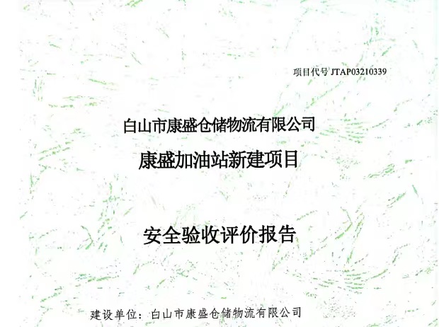 JTAP03210339白山市康盛倉儲物流有限公司康盛加油站新建項目安全驗收評價