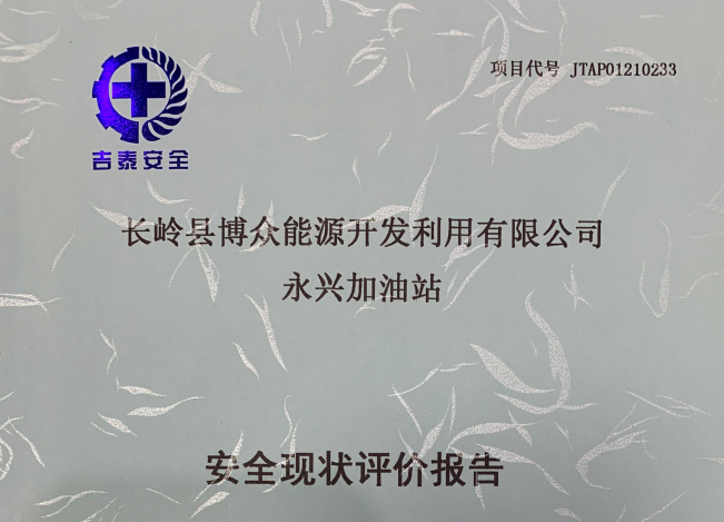 JTAP01210233--長(zhǎng)嶺縣博眾能源開(kāi)發(fā)利用有限公司永興加油站安全現(xiàn)狀評(píng)價(jià)