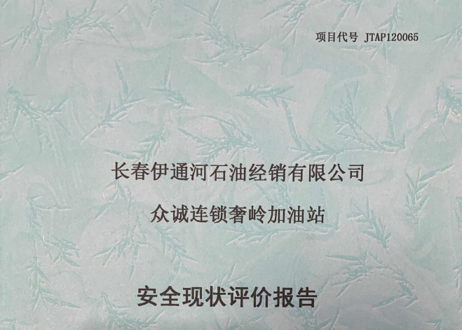 JTAP120065--長春伊通河石油經(jīng)銷有限公司眾誠連鎖奢嶺加油站安全現(xiàn)狀評價
