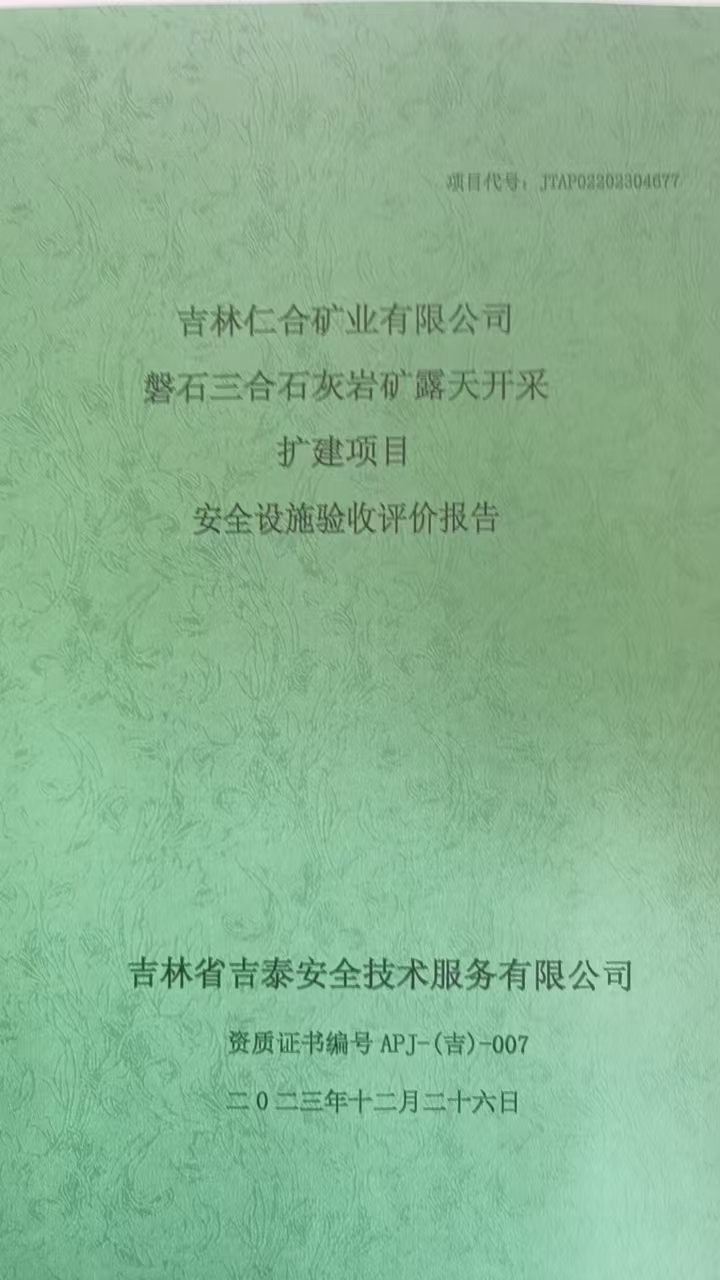 JTAP0220230677-吉林仁合礦業(yè)有限公司磐石三合石灰?guī)r礦安全設(shè)施驗(yàn)收評(píng)...