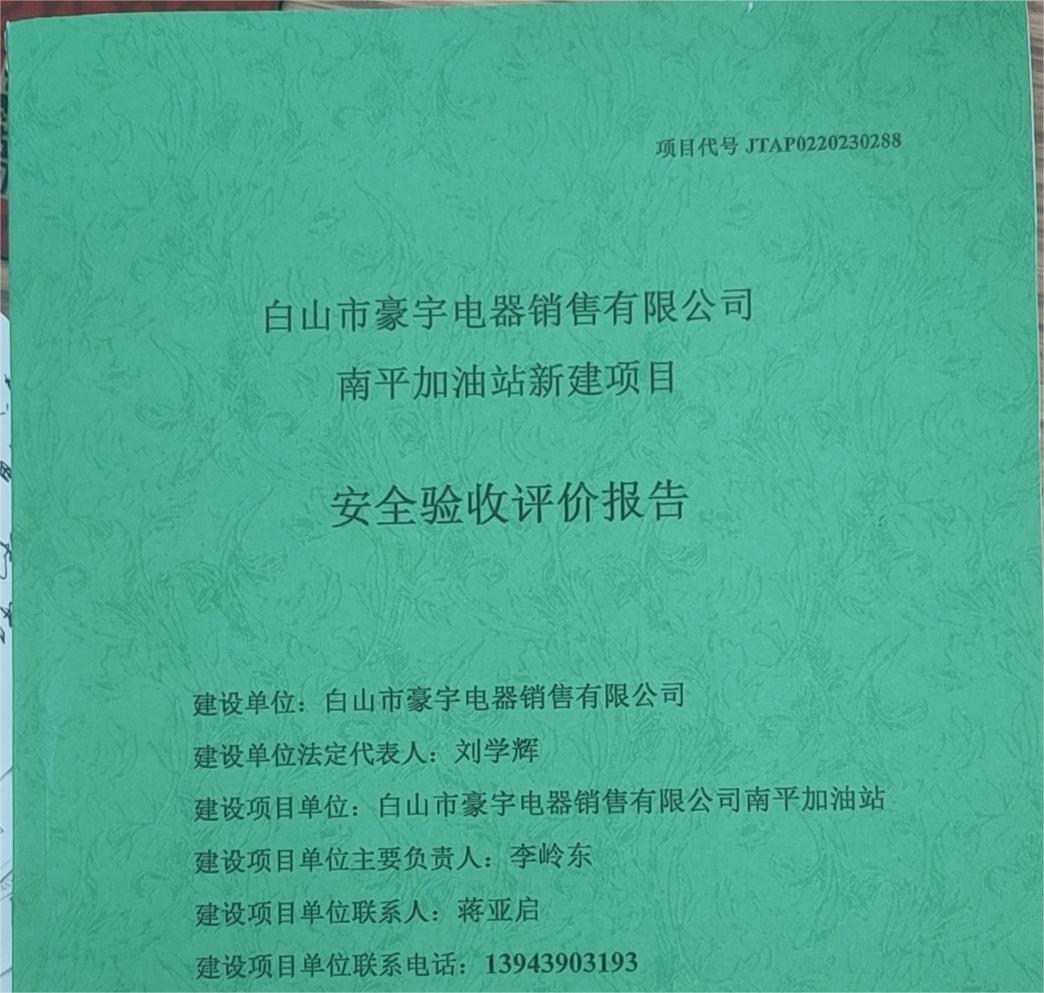 JTAP0220230288--白山市豪宇電器銷(xiāo)售有限公司南平加油站新建項(xiàng)目安全...