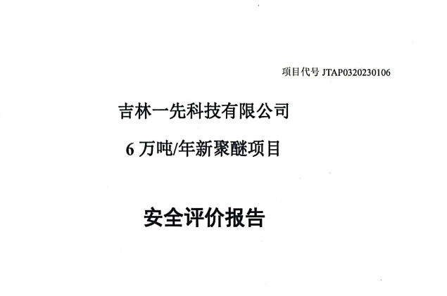 JTAP0320230106--吉林一先科技有限公司6萬噸年新聚醚項目安全評價